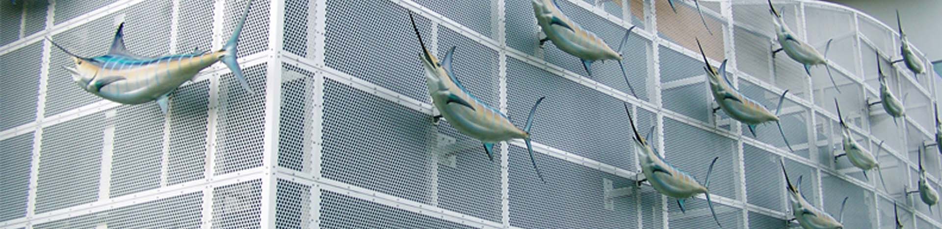 Architectural perforated metal is extremely versatile and lightweight. It comes in round, square, slotted and decorative perforations. Some architectural perforated metal applications include sunscreens, ceiling panels, and exterior cladding.