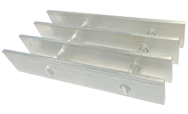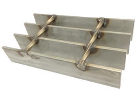 Bar grating stair treads are offered in a welded construction and is made with a nosing that is welded to the leading edge of the tread. End plates can be welded to the ends of the treads to mechanically fasten to stair stringer channels. Stair treads come in both plain and serrated styles.