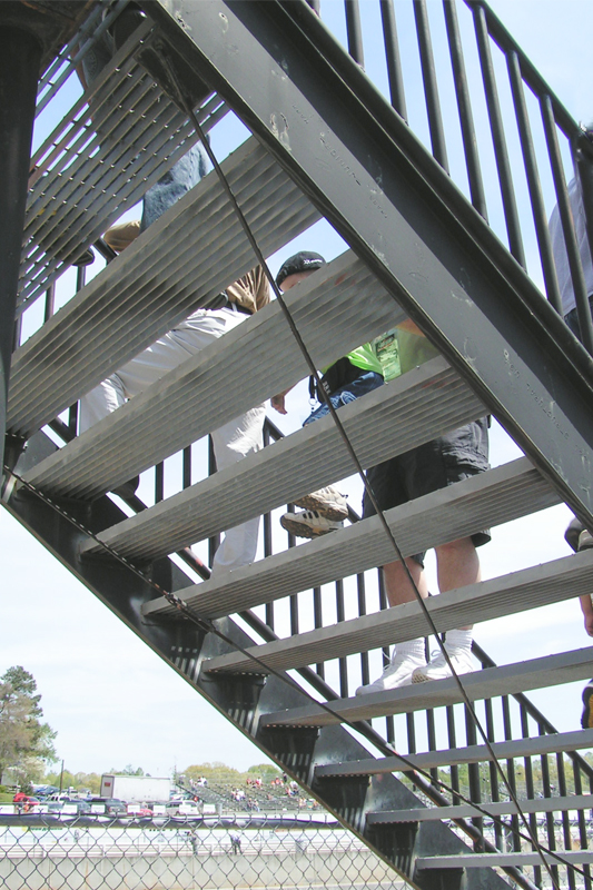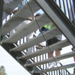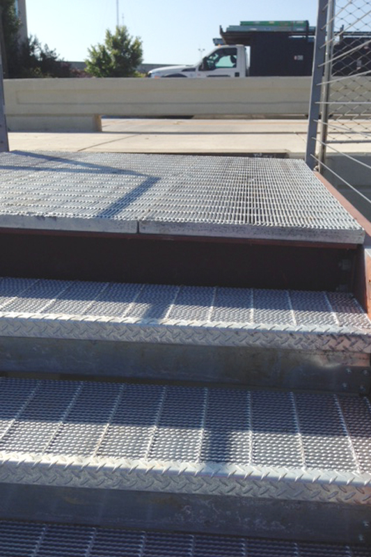 A: 12 steps are typically allowed for general access stairs. We offer up to 10 bearing bars for stair treads to safely support the weight of the metal.